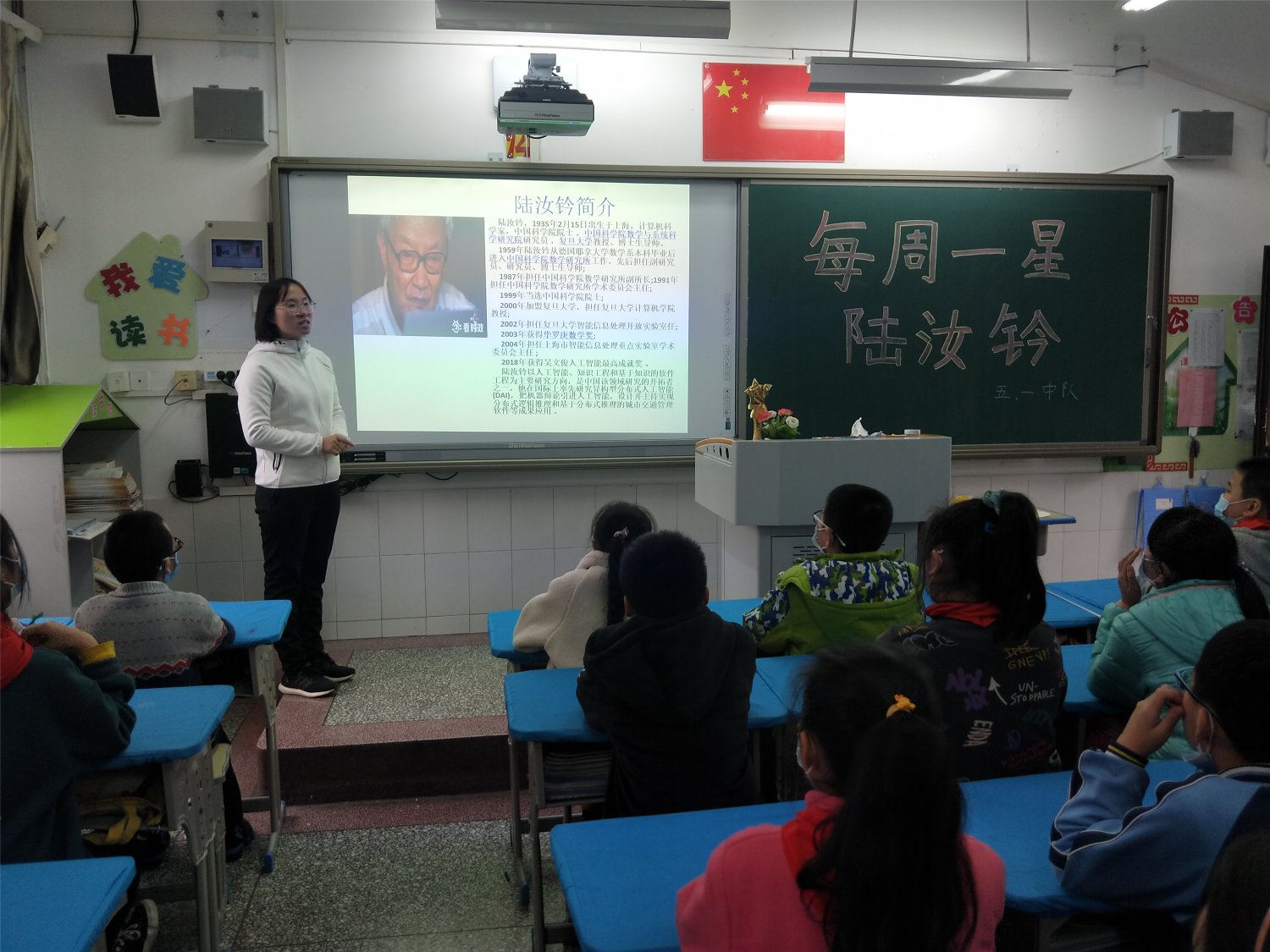 课堂上,通过各中队辅导员老师的详细讲解,队员们了解到了陆汝钤院士作为中国人工智能领域的开拓者和先驱之一,在知识工程方面取得了系统性的创新成就,特别是在全过程动画自动生成、专家系统开发环境、软件自动生成、少儿图灵测试、大知识特征刻画等方面取得多项被国际公认具有创新性的领先成果。