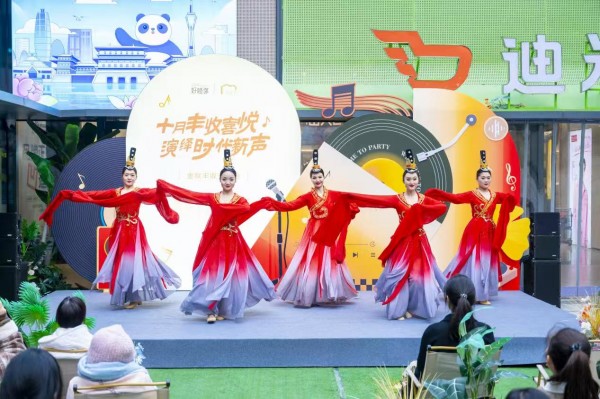 “之前天天下雨,心情都有点压抑,今天出来听听歌、逛逛街,感受这份热闹的烟火气,心情也好多了!”家住附近的王女士说。舞台上,一首首歌颂丰收与希望的歌曲唱响,驱散了连日阴雨带来的疲惫;台下,观众跟着熟悉的旋律点头哼唱,挥舞着手中的灯牌,欢快的曲调抚了平心间褶皱,为忙碌的生活带来治愈的能量。