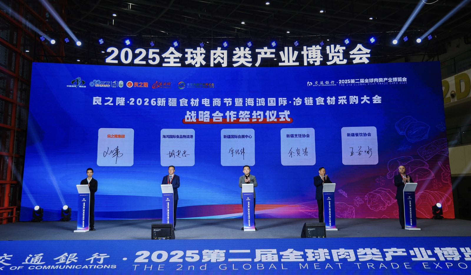 签约仪式环节成果丰硕。博览会组委会先后与多家商协会达成战略合作,与原阳县等多个肉类产业特色县签署合作协议,并成功举行了“良之隆·2026新疆食材电商节”战略合作签约仪式。