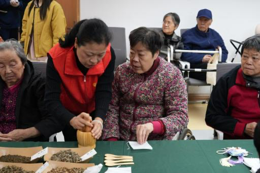 本次活动特别围绕重阳节主题,设置茱萸药草香包制作环节。在平安志愿者的陪伴下,老人们将茱萸、艾草、紫苏等6种药材在罐子里研磨捣碎,装进内袋再放进香囊中,一个个寓意平安健康的香囊呈现在眼前。志愿者们与老人们进行深入交流,询问日常生活起居,关心长者身体健康。