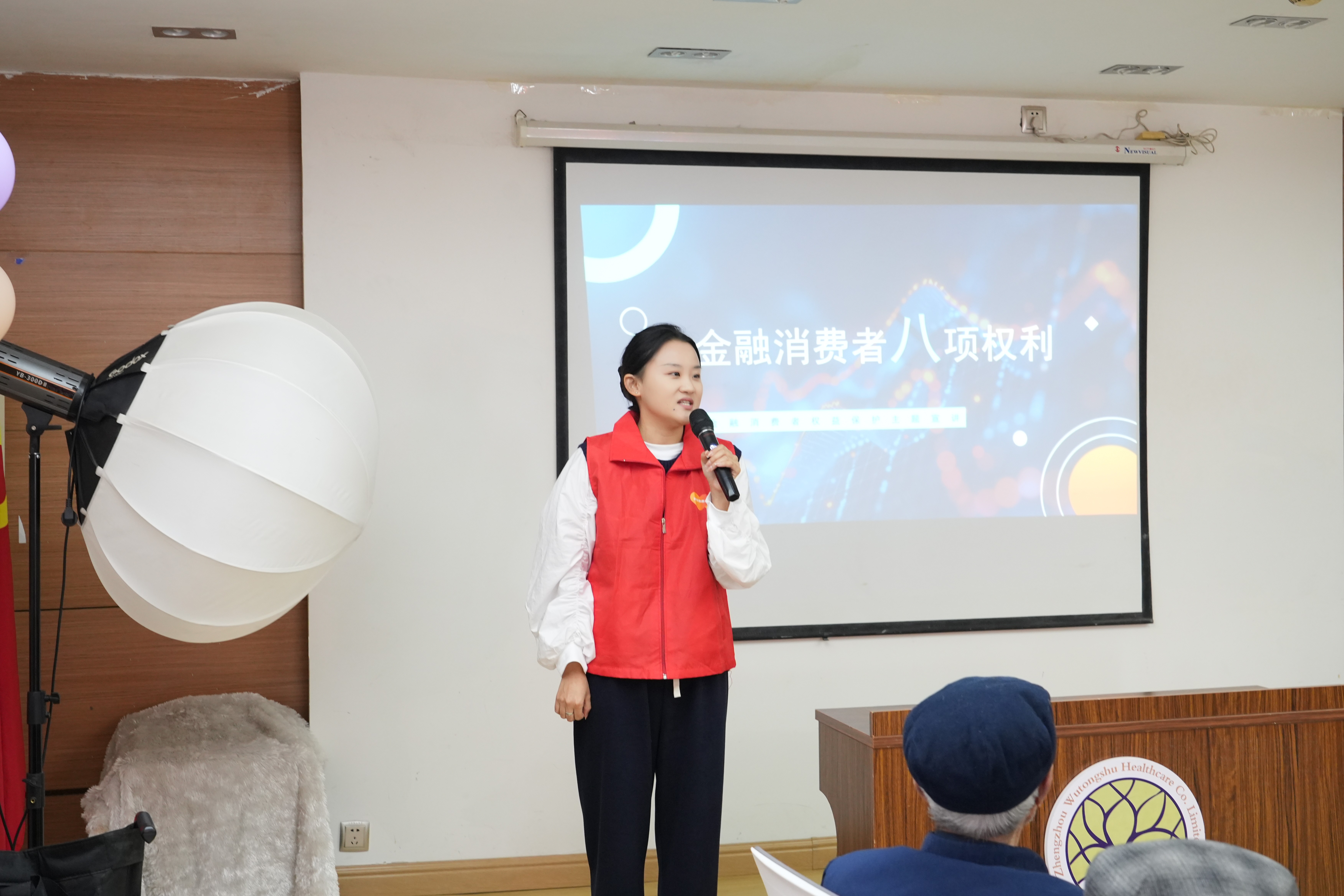 为扎实推进金融五篇大文章,持续推动养老金融高质量发展,本次活动特别设置“银龄金融课堂”,平安金融知识志愿宣讲团成员张笑驰以金融消费者八项权益展开,现场播放“打击代理退保”主题短剧,通过剖析“免费领礼品被骗”“谨慎对待陌生来电”等案例,帮助在座的老年群体提升风险防范意识。