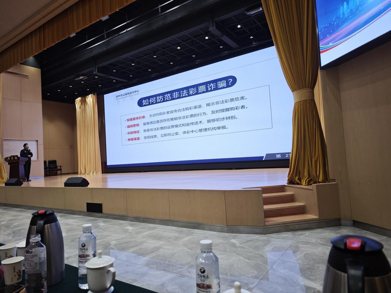 培训现场,反诈民警以“提高防骗意识,守护彩票公信力”为主题展开专题演讲。他结合近年来全国范围内发生的多起涉彩票领域诈骗典型案例,从诈骗分子的作案手法、目标群体、话术设计等方面进行深度剖析,重点讲解了“虚假中奖诈骗”“代购彩票诈骗”“预测彩票号码诈骗”等常见骗局的识别要点。