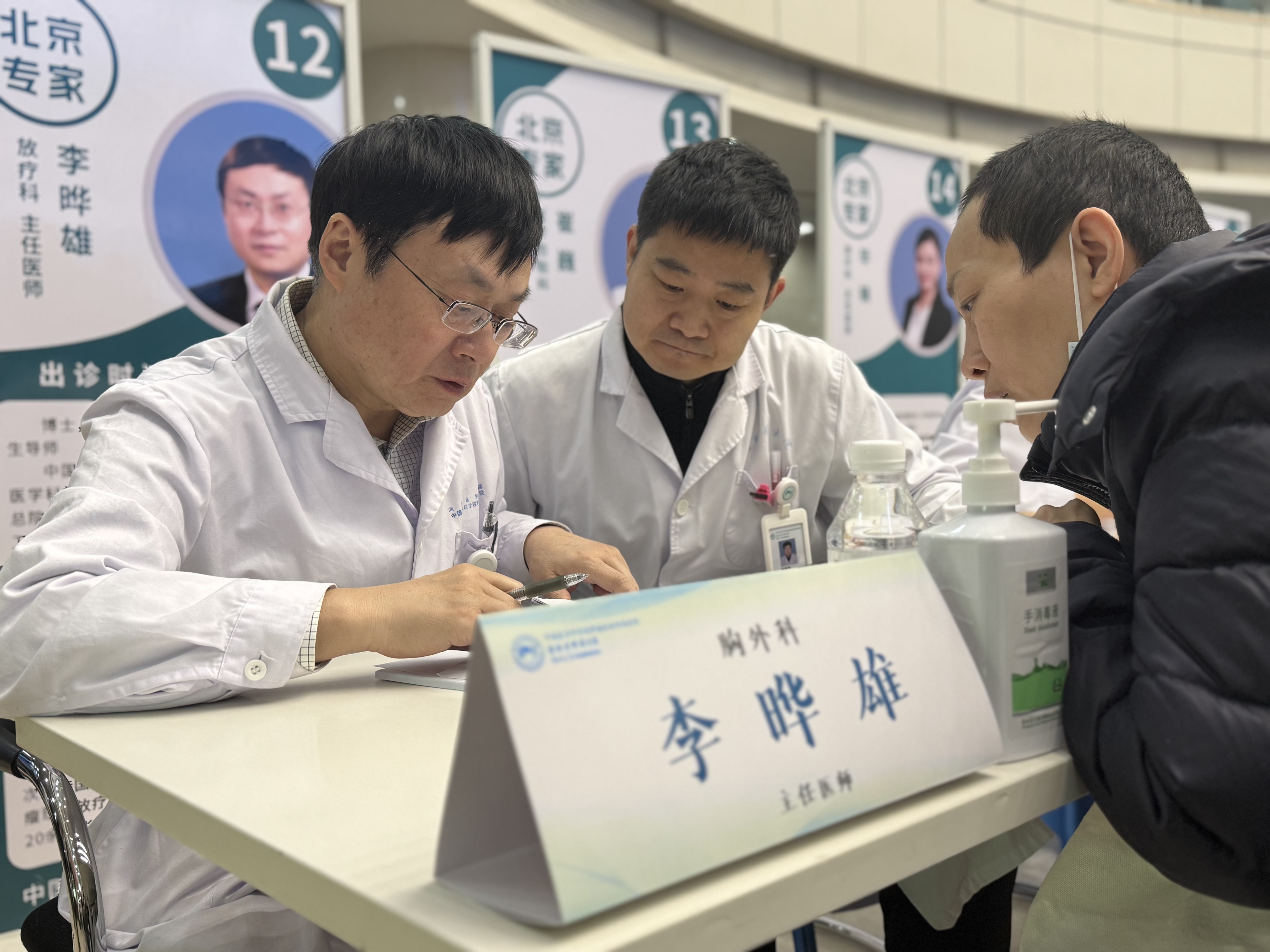 人群中,有患者带着一沓厚厚的检查报告,从赫捷院士的诊台走出,脸上的愁云消散了大半。“之前想挂赫院士的号,在北京都得排好几个月,还得来回折腾。今天院士亲自给我看片子,这趟来得太值了!”