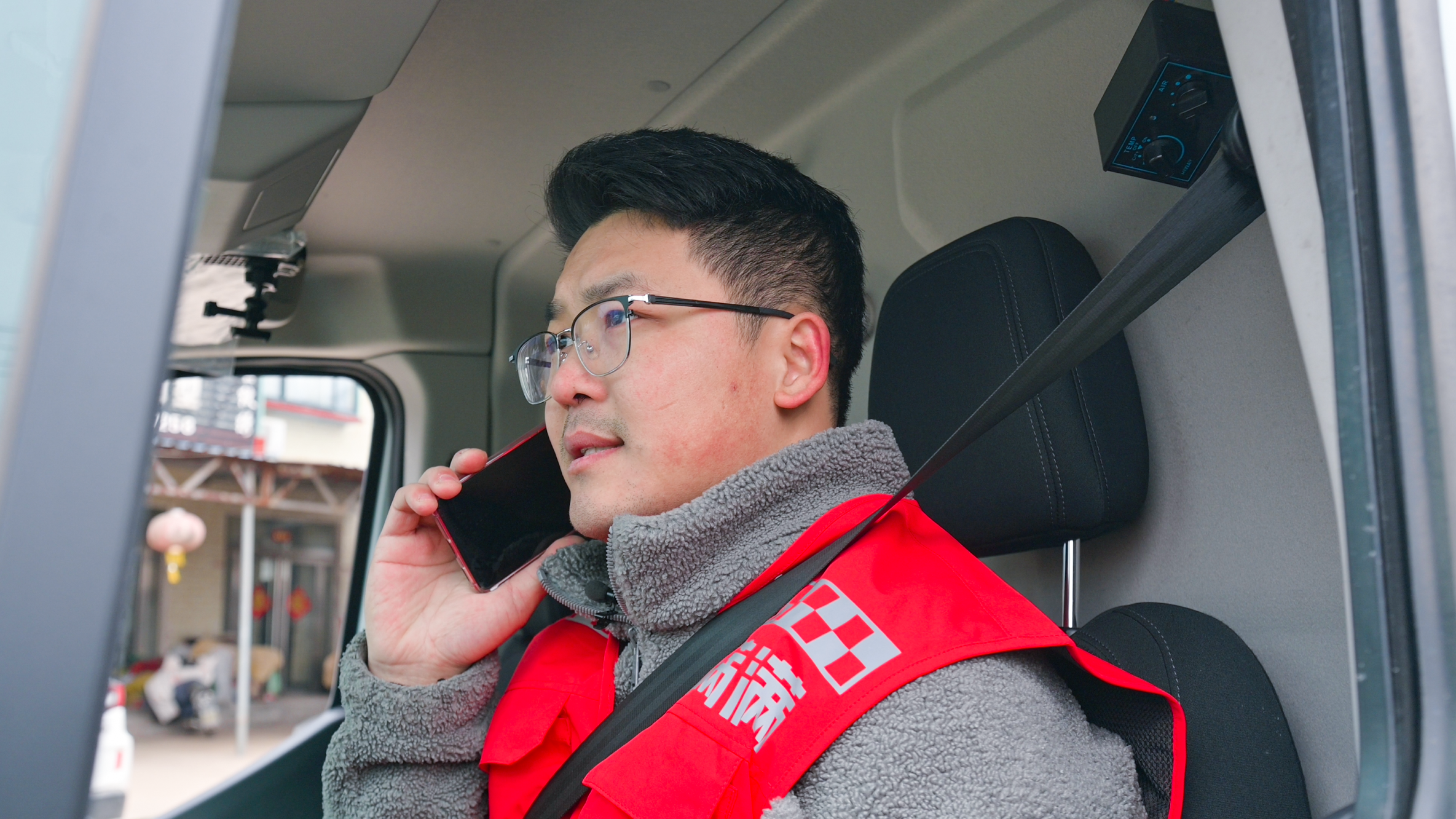 杨建文驾驶的货车车头上方,醒目地贴着“为人民服务”5个大字。这不仅是杨建文对名言的信奉,更源于其自身的一段切身经历:16年前,13岁的他因家庭矛盾离家出走,正是在陌生人与警察的帮助下得以安全返家。那道曾照亮他迷茫年少的光,被他珍藏心底。
