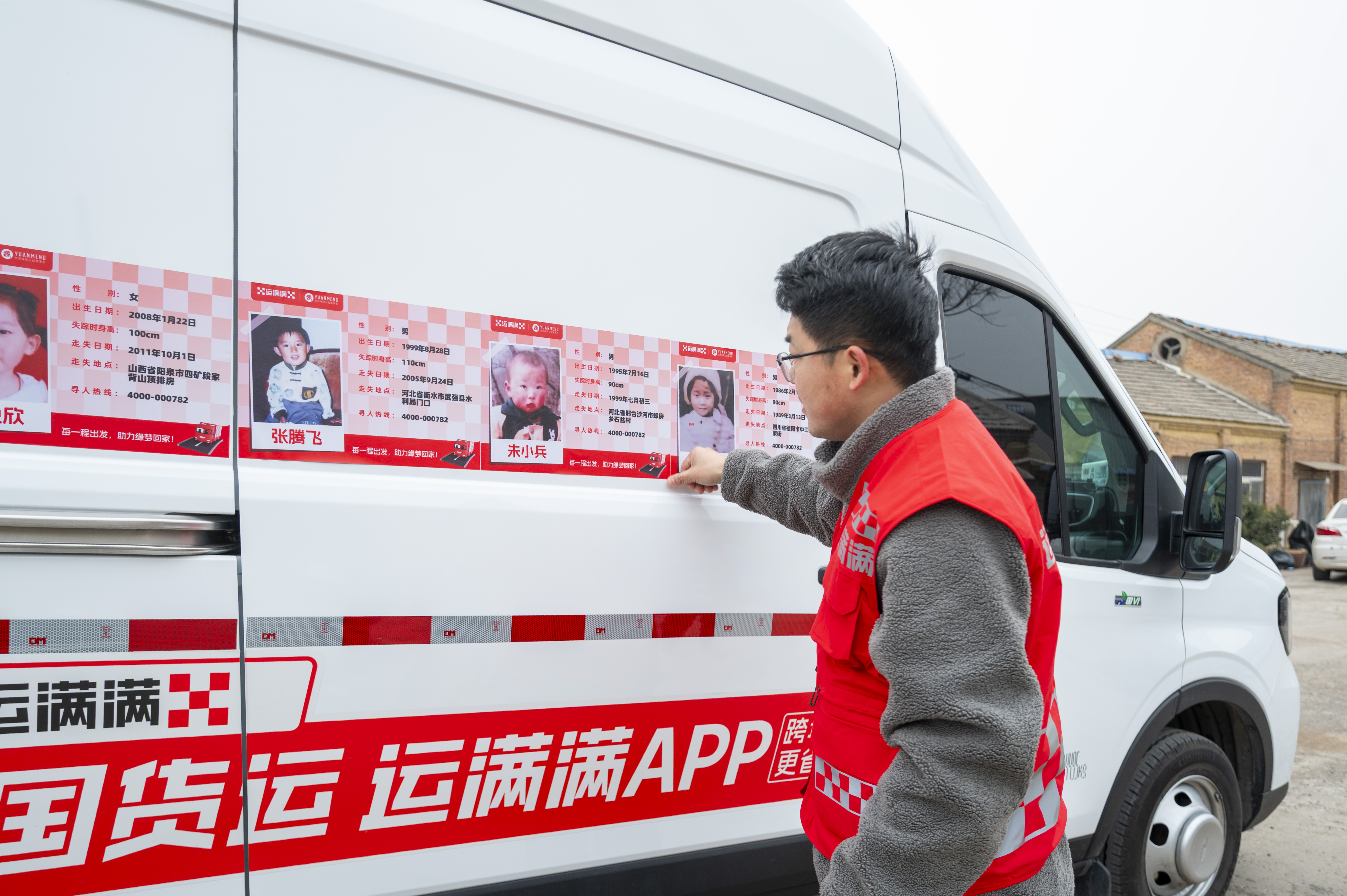(杨建文的货车上,贴满了公益寻亲的照片,他说能帮一家是一家)