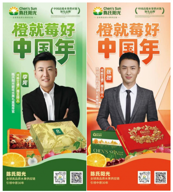 更有河南交通广播知名主持人李宪&张弛联名推荐,陈氏阳光2026新春鲜果礼盒,以全球鲜萃的甜润,裹着马年的吉祥寓意,为你的春节送上一份团圆好礼清单,“橙”就“莓”好中国年。