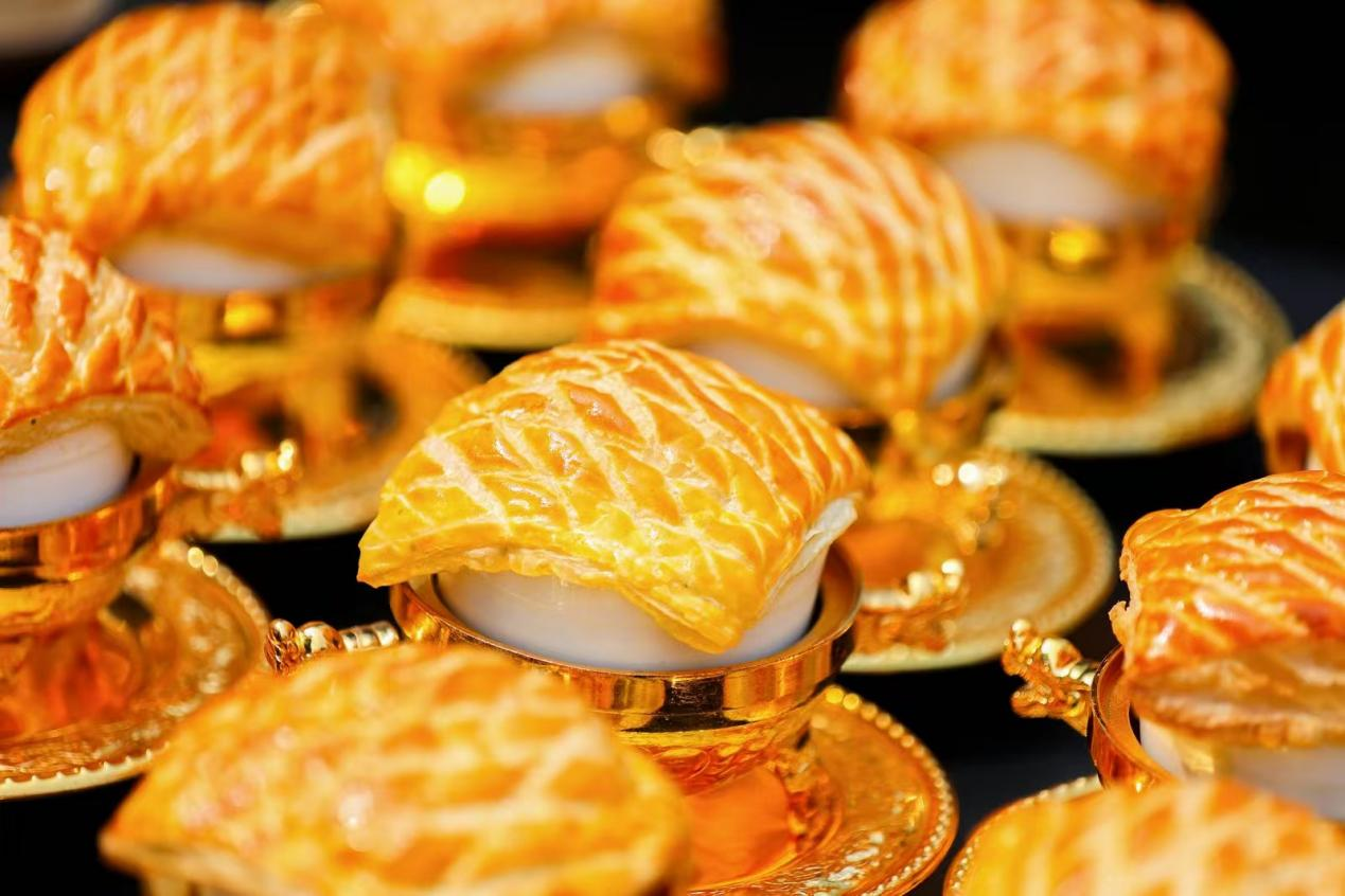 酥皮蛤蜊胡辣浓汤是此次菜单中的亮点之一。这道菜将太平洋蛤蜊浓汤与中原胡辣汤奇妙结合,以辛香胡辣汤为魂,融入黄油与海参、鲍鱼等海味,搭配中式葱油饼,胡辣开胃,既有中原的浓郁,又有海洋的鲜美。布法罗糖醋鲤鱼焙面则在河南传统名菜鲤鱼焙面的基础上,注入美式布法罗辣椒酱,糖醋汁打底,甜辣交织,创造出全新的味觉层次。鲤鱼焙面本是豫菜经典,此次创新让这道传统菜肴焕发出新的生命力。