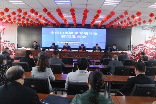 4月16日,三门峡市召开扫黑除悉专项斗争新闻发布会,邀请人大代表、政协委员、执法监督员和省市媒体记者50余人参加会议。发布会现场,三门峡市扫黑办、市纪委监委、市委组织部、市公安局、市检察院、市法院有关负责人分别通报了专项斗争开展情况及成效,并对记者提问进行解答。