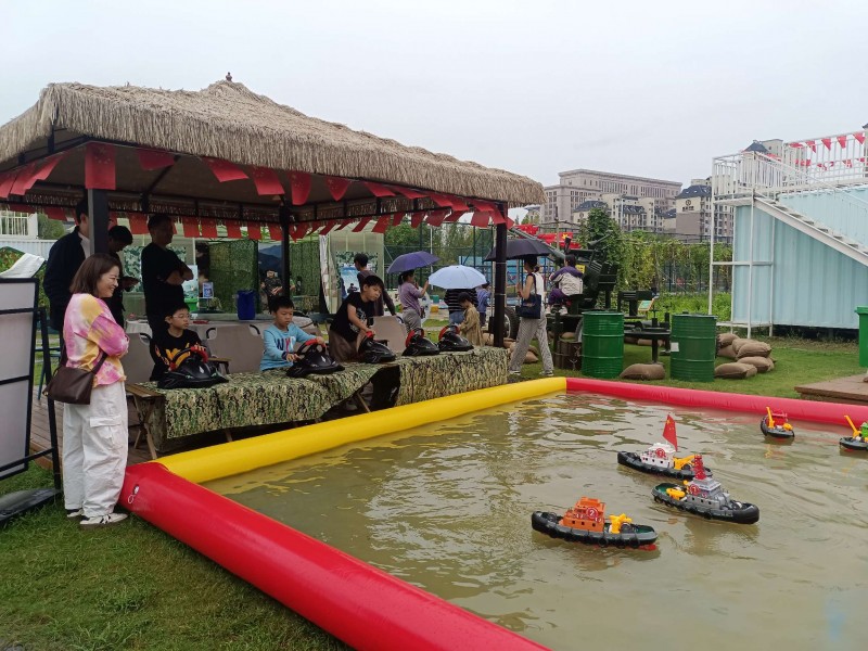一个叫刘语晨的小女孩正趴在涂鸦区的长亭下,小心翼翼地为手中的坦克画上迷彩。颜料染绿了她的指尖,但她毫不在意——这是她在这次“利剑长空·共筑长城”航空航天国防科技探索季中,为自己创造的最特别的纪念品。