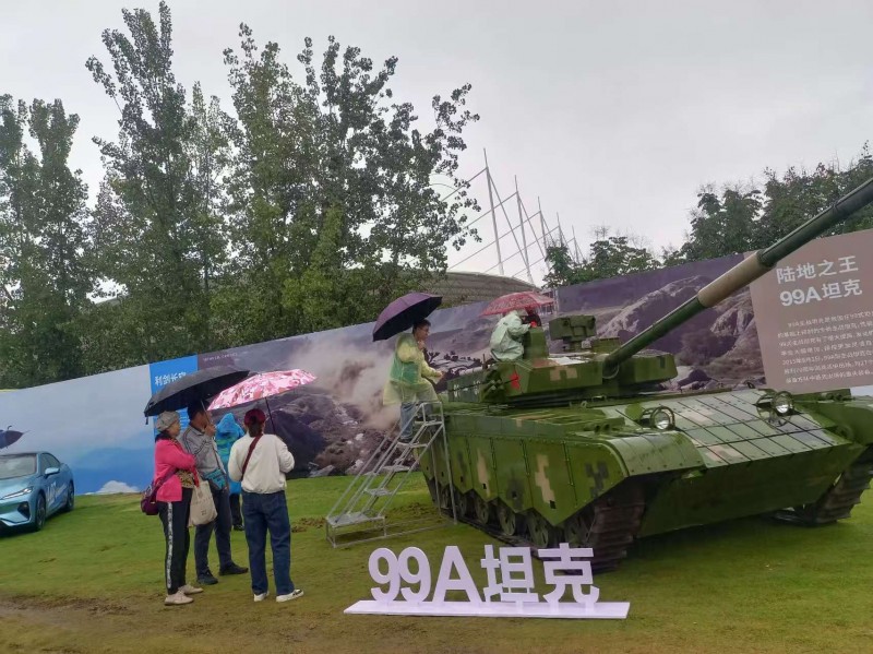 在军事地面装备展区,你可以与更多“陆战王者”集合,这里有极具威慑力的东风-21D导弹,有长达8米的99A主战坦克,还有vn2轮式装甲车、152榴弹炮、62步兵炮等经典装备模型,在陆地防御图景中体验一把“战场英雄”!