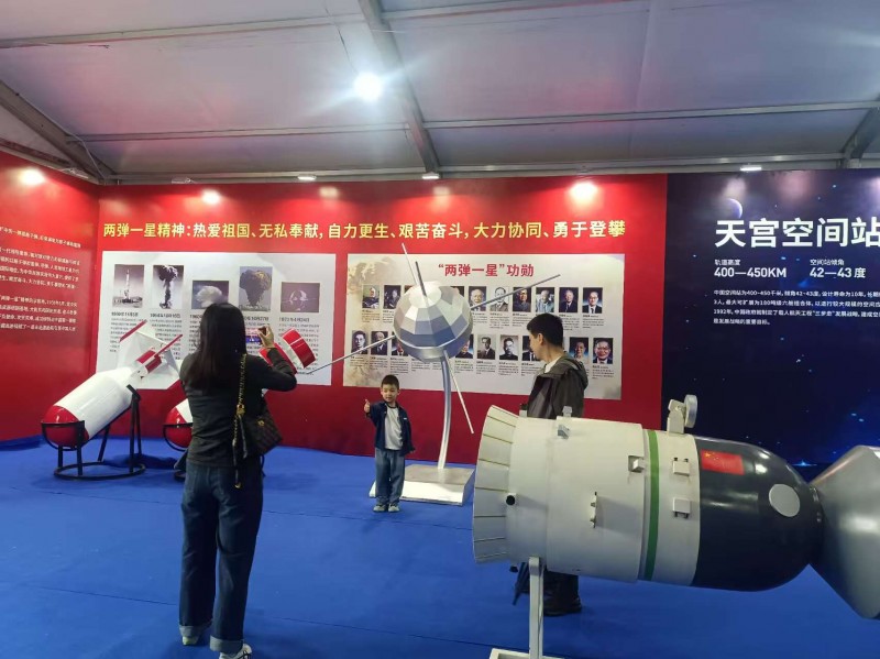 在航空航天展区,你可以打卡1:1复刻的歼-10战斗机模型,感受国产战机的凛然气概;也能近距离观察墨子号、悟空号、北斗卫星等一系列高精度卫星模型,了解它们如何守护着我们生活的方方面面,领略中国航天的广阔视野。